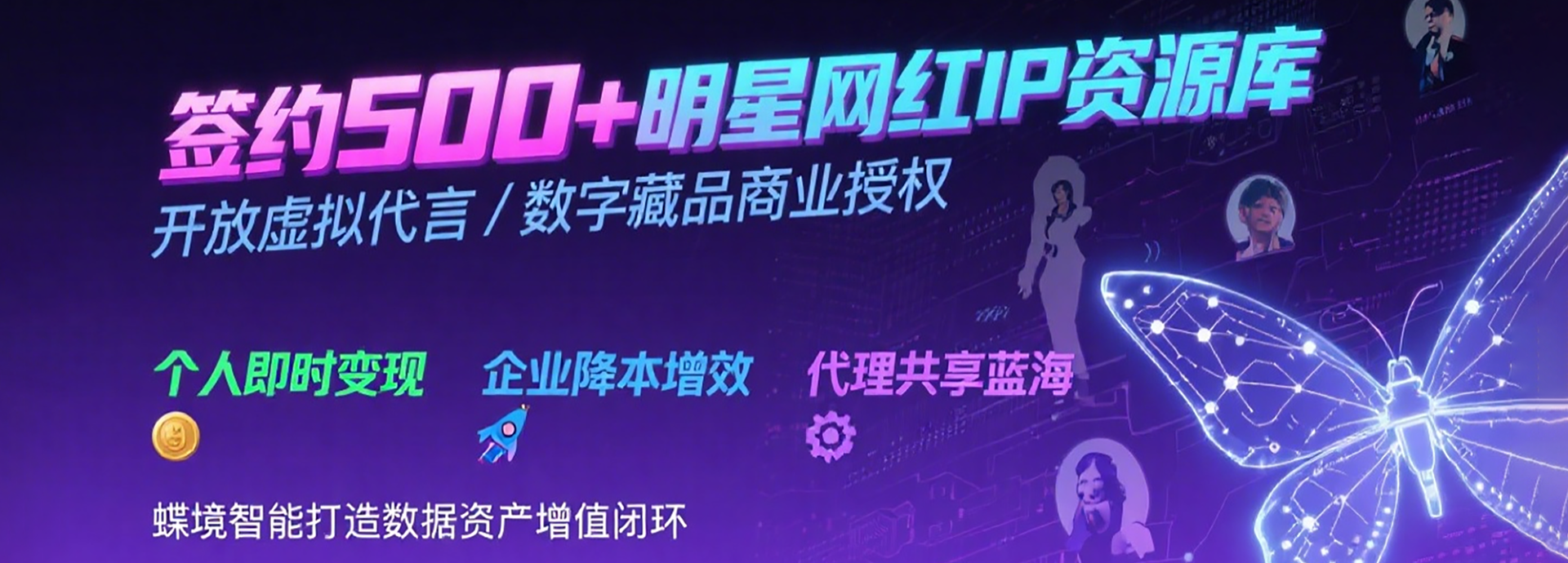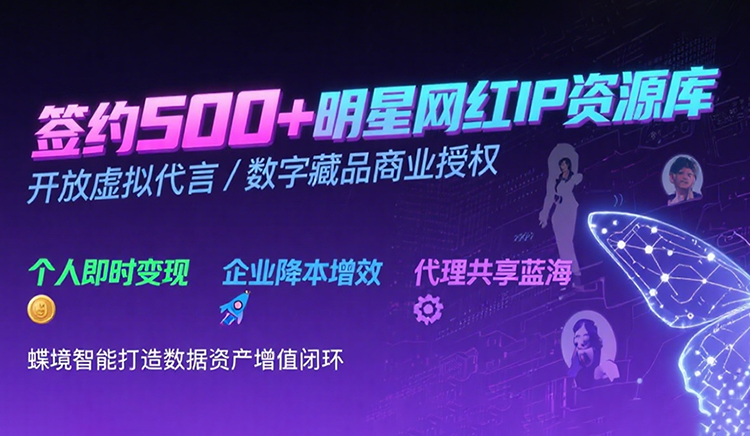 公司核心团队汇聚数据知识产权运营专家、明星IP商业化操盘手(合作艺人超500位)及AI科学家,整合500+明星网红IP资源库,并接入抖音、快手等10亿级流量生态。目前,蝶境智能已与深圳市标准技术研究院、头部MCN机构及潮玩品牌建立深度合作,致力于推动虚拟代言、数字人分身等场景落地,践行“让数据知识产权成为持续量产的财富”的企业使命。